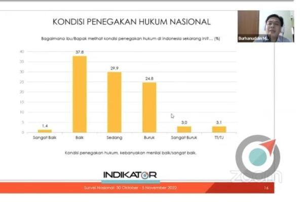 “Dari mereka yang tahu, mayoritasnya mendukung kebijakan Kapolri Listyo Sigit,” kata Burhanuddin saat memaparkan hasil survei bertajuk Kinerja Lembaga Penegak Hukum di Mata Publik dan Penanganan Kasus-Kasus Besar secara virtual, Minggu (27/11).