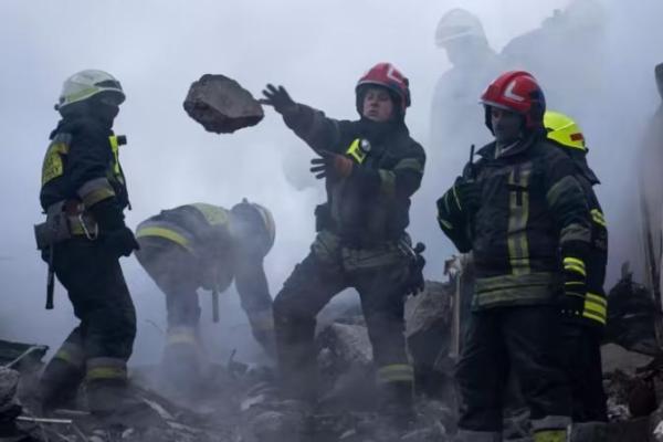 Serangan di gedung pada Sabtu (14/1) terjadi di tengah rentetan besar rudal jelajah Rusia melintasi Ukraina.