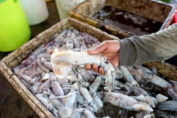 Seorang pekerja memilih cumi yang akan ditimbang di Tempat Pelelangan Ikan (TPI). (Foto dok. Humas BKIPM KKP)