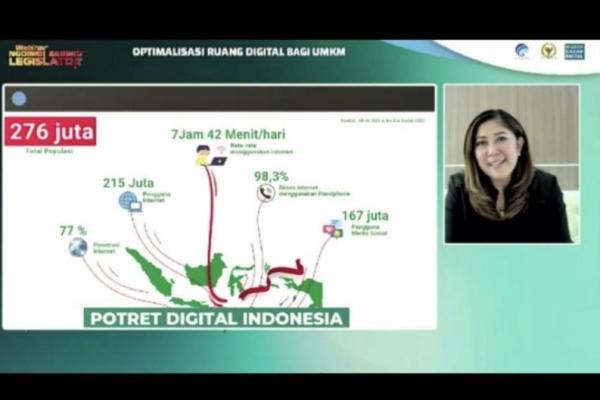 `DPR mendorong segala aspek masyarakat khususnya yang bergerak di bidang UMKM untuk memanfaatkan segera dan semaksimal mungkin semua platform digital. Yang mendukung upaya menyukseskan dunia UMKM," kata Meutya Hafid dalam keynote speakernya pada acara webinar Ngobrol Bareng Legislator bertajuk Optimalisasi Ruang Digital Bagi UMKM, Rabu (5/4).