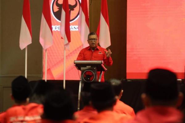 Sekjen PDIP Hasto Kristiyanto saat Rakernis di Surabaya, Jawa Timur.
