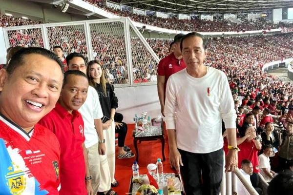 Ketua MPR, Bambang Soesatyo menyaksikan pertandingan FIFA Match Day 2023 antara Indonesia melawan Argentina, di Stadion Utama Gelora Bung Karno, Jakarta, Senin malam (19/6/23). (Foto: Humas MPR)