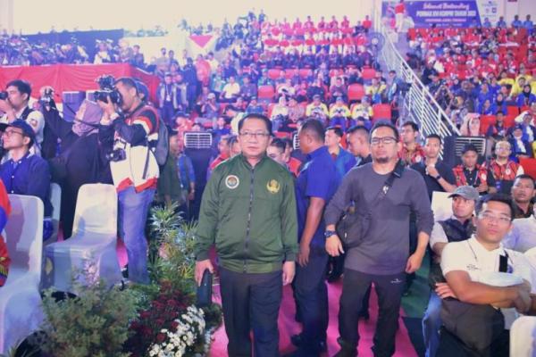 Sekretaris Jenderal (Sekjen) Kementerian Desa, Pembangunan Daerah Tertinggal dan Transmigrasi (Kemendes PDTT) Taufik Madjid menghadiri Pembukaan Pekan Olahraga Nasional (PORNAS) KORPRI ke-XVI di GOR Jatidiri Semarang, Jumat (14/7/2023) malam. (Foto: Humas Kemendes PDTT)