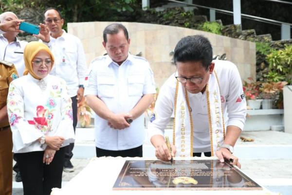 Menteri Desa, Pembangunan Daerah Teringgal dan Transmigrasi, Abdul Halim Iskandar didampingi Istri Lilik Umi Nashriyah beserta rombongan meresmikan Desa adat di Desa Musi, Pulau Salibabu, Kecamatan Lirung, Kabupaten Kepulauan Talaud, Sulawesi Utara, Rabu (16/8/2023). (Foto: Humas Kemendes PDTT)