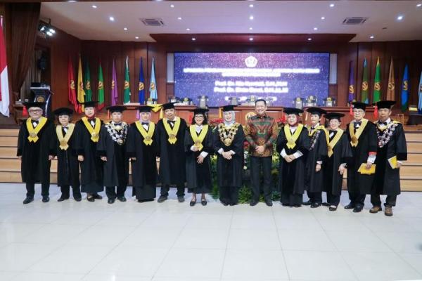 Ketua MPR, Bambang Soesatyo menghadiri pengukuhan Sinta Dewi sebagai Profesor/Guru Besar Bidang Ilmu Hukum Siber FH UNPAD, di Graha Sanusi Hardjadinata, Bandung, Selasa (26/9/23). (Foto: Humas MPR)