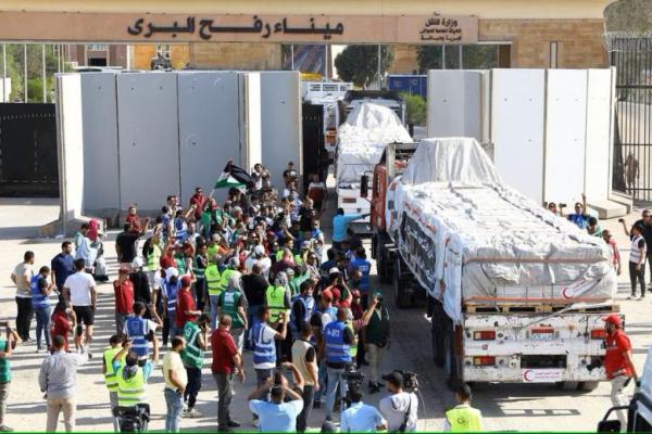 Para saksi mata mengatakan truk-truk bantuan keluar dari penyeberangan setelah pemeriksaan dan melanjutkan perjalanan ke wilayah selatan Gaza termasuk kota-kota besar Rafah dan Khan Younis di mana ratusan ribu orang yang kehilangan tempat tinggal termpat berlindung akibat perang udara Israel yang tak henti-hentinya.