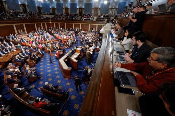 Anggota korps pers Capitol Hill berkumpul untuk pemungutan suara putaran ketiga Ketua DPR baru di US Capitol di Washington, AS, 20 Oktober 2023. Foto: Reuters
