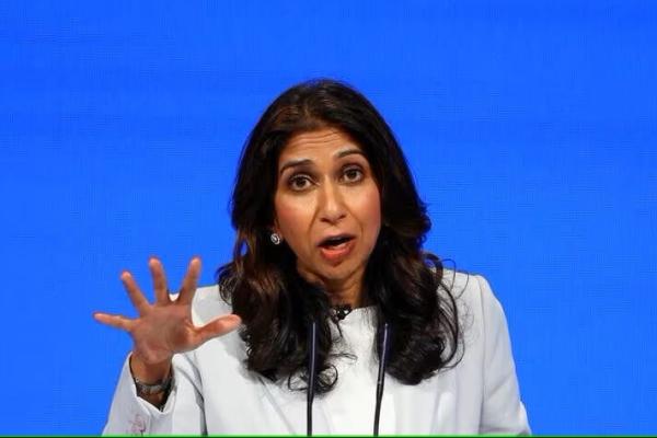 Menteri Dalam Negeri Inggris Suella Braverman pada konferensi tahunan Partai Konservatif Inggris di Manchester, Inggris, 3 Oktober 2023. Foto: Reuters