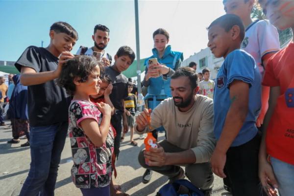 Kegiatan melukis untuk anak-anak di Rumah Sakit al-Shifa untuk mengalihkan pikiran mereka dari serangan Israel. (FOTO: AL JAZEERA)