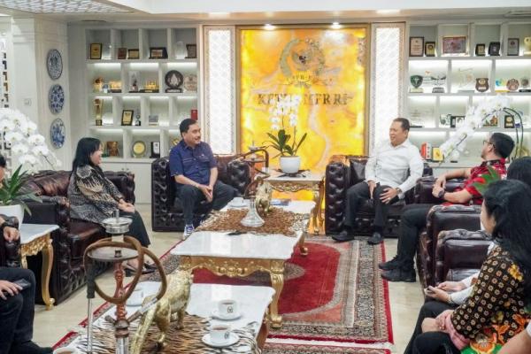 Ketua MPR, Bambang Soesatyo menerima panitia Perayaan Natal Bersama 2023 dan Tahun Baru 2024 MPR RI - DPR RI - DPD RI, di Jakarta, Kamis (16/11/23). (Foto: Humas MPR)