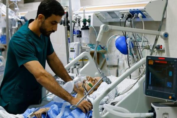 Pekerja medis membantu seorang warga Palestina di Unit Perawatan Intensif rumah sakit Nasser, di Khan Younis, di selatan Jalur Gaza, 26 Oktober 2023. Foto: Reuters