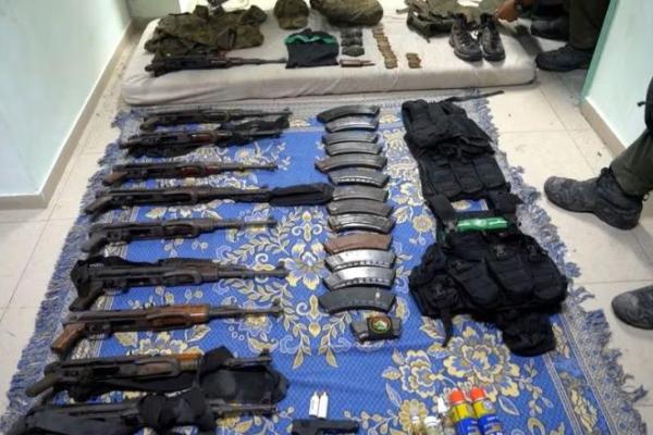 Senjata dan peralatan yang menurut tentara Israel ditemukan di kompleks rumah sakit Al Shifa di Jalur Gaza, pada 15 November 2023. Handout via Reuters
