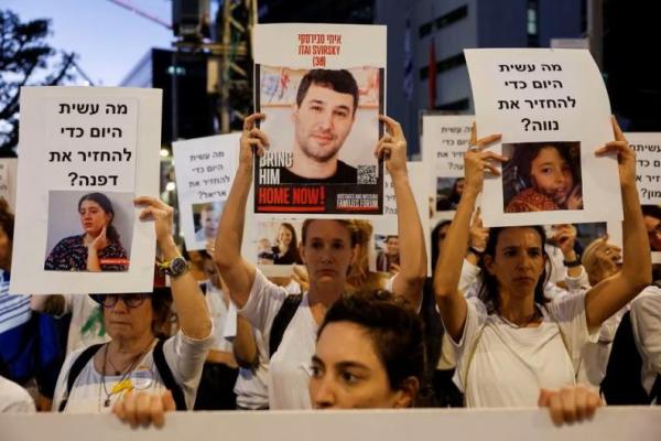Para pengunjuk rasa menuntut pembebasan sandera yang ditahan di Jalur Gaza, di Tel Aviv, Israel 21 November 2023. Foto: Reuters