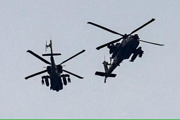 Helikopter militer Israel terbang di dekat perbatasan Israel-Gaza terlihat dari Israel selatan, 7 Desember 2023. Foto: Reuters