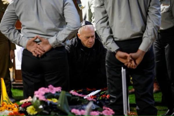Menteri Pertahanan Israel Yoav Gallant meletakkan bunga di pemakaman militer Mount Herzl di Yerusalem, 13 Desember 2023. Foto: Reuters