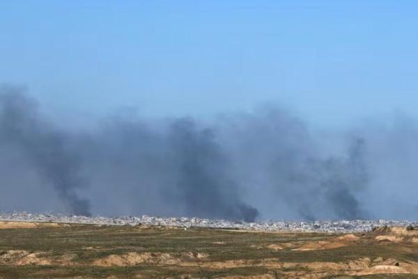 Kobaran api melanda Gaza, di tengah konflik Israel dan kelompok Islam Palestina Hamas, seperti terlihat dari Israel selatan, 29 Desember 2023. Foto: Reuters
