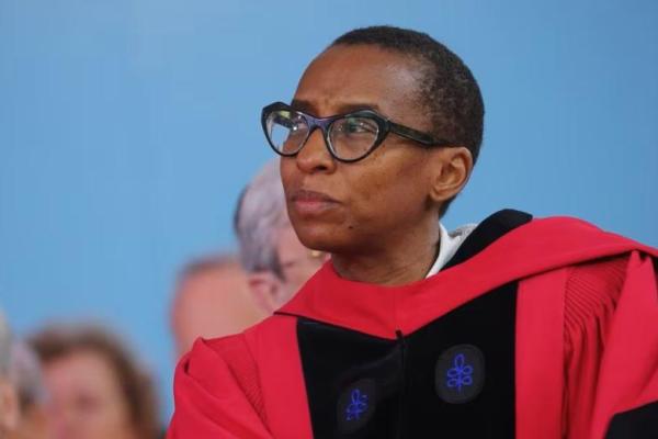 Presiden Universitas Harvard, Claudine Gay mendengarkan Latihan Pembukaan Universitas Harvard ke-372 di Cambridge, Massachusetts, AS, 25 Mei 2023. Foto: Reuters