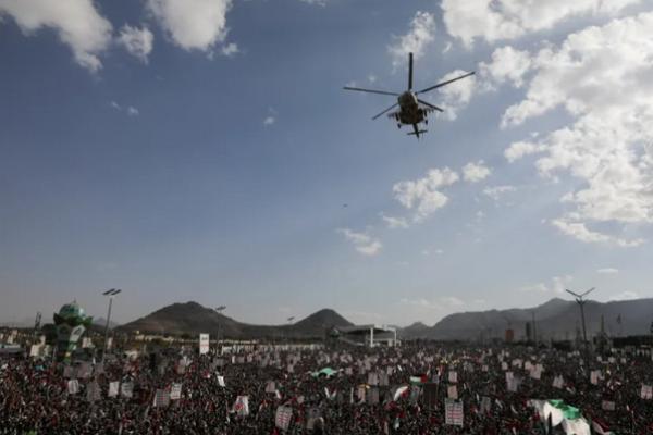 Namun pada rapat umum hari Jumat, Houthi tampak menantang, ketika sebuah pesawat tempur terbang di atasnya, para pemimpin memuji para martir kelompok tersebut dan menyatakan bahwa mereka siap menghadapi eskalasi militer dari AS.
