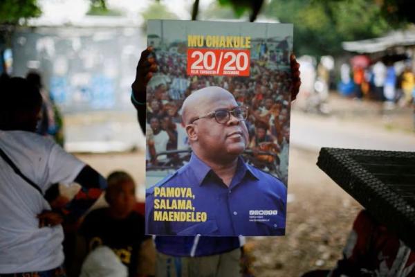 Seorang pendukung memegang foto presiden Felix Tshisekedi menjelang pengumuman hasil sementara pemilihan presiden di Kinshasa, Republik Demokratik Kongo, 31 Desember 2023. Foto: Reuters