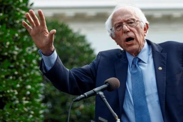 Senator AS Bernie Sanders berbicara kepada media di Gedung Putih di Washington, AS, 17 Juli 2023. Foto: Reuters
