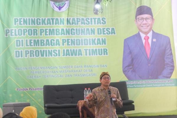 Menteri Desa Pembangunan Daerah Tertinggal dan Transmigrasi (Mendes PDTT) Abdul Halim Iskandar (Gus Halim) memberikan pengarahan dalam peningkatan kapasitas pelopor pembangunan desa di PPPI Al-Ittihad, Kabupaten Malang, Jawa Timur, Jumat (19/1/2024). (Foto: Humas Kemendes PDTT)