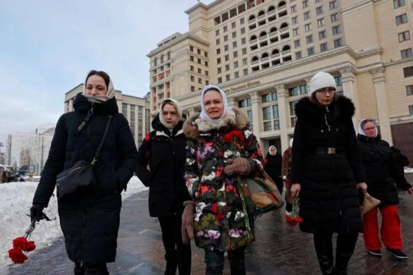 Maria Andreeva bersiap meletakkan bunga di Makam Prajurit Tak Dikenal di dekat tembok Kremlin di Moskow, Rusia, 20 Januari 2024. Foto: Reuters