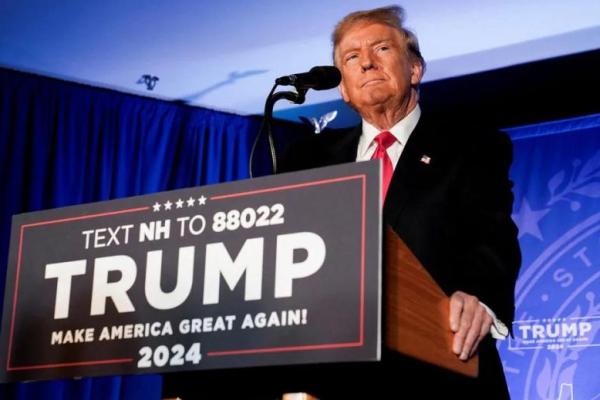 Mantan Presiden AS dan calon presiden dari Partai Republik Donald Trump di Portsmouth, New Hampshire, AS, 17 Januari 2024. Foto: Reuters