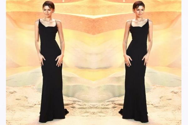 Peragaan busana tidak berhenti sampai disitu saja. Zendaya berganti dengan gaun hitam Mugler dengan garis leher cowl yang elegan. Dia melengkapinya dengan anting-anting Bulgari vintage dan cincin zamrud.