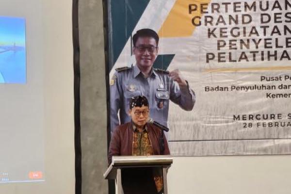 Kepala Badan Penyuluhan dan Pengembangan SDM Pertanian (BPPSDMP), Dedi Nursyamsi membuka pertemuan penyusunan Grand Desain dan Sinergi Kegiatan Penguatan Penyelenggaraan Pelatihan Pertanian, Rabu (28/02/2024) di Jakarta.