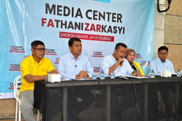 Konferensi Pers Pasangan Calon Walikota dan Wakil Walikota Lhokseumawe, Aceh, Nomor Urut 4, Fathani dan Zarkasyi (Fazar). Foto: dok. Jurnas