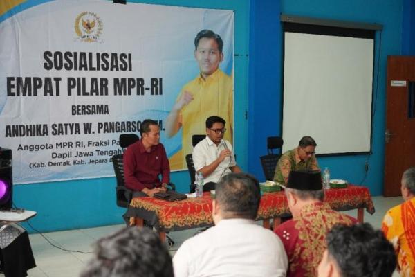 Demak, Jurnas.com- Sosialisasi 4 Pilar MPR RI yang terdiri dari pilar Pancasila, UUD NRI Tahun 1945, NKRI, dan Bhinneka Tunggal Ika. Kegiatan tersebut dijalankan oleh Anggota MPR RI, salah satunya, Andhika Satya Wasishto Pangarso, atau kerap disapa Mas Dewan. Pelaksanaan kegiatan tersebut bertujuan untuk penguatan nilai-nilai ke-Indonesiaan terhadap kemajemukan yang ada pada Bangsa Indonesia.