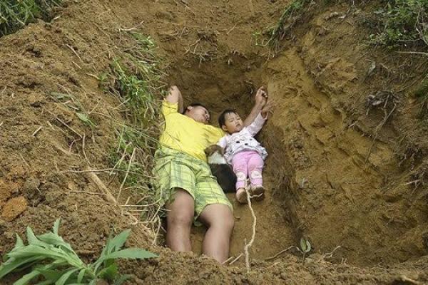 Seorang Ayah Mengajak Seorang Putrinya Bermain di Kuburan