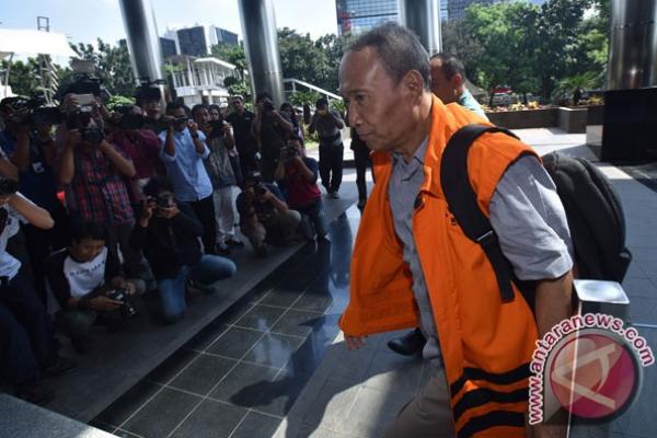 Mantan Direktur Pengelola Informasi Administrasi Kependudukan Ditjen Dukcapil Kemendagri Sugiharto bersiap menjalani pemeriksaan di gedung KPK.