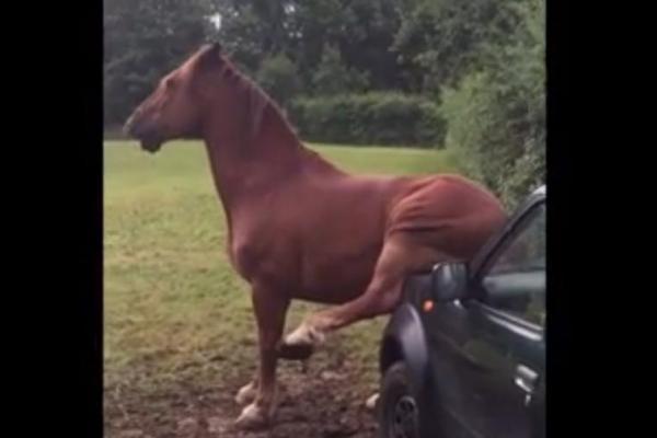 Saat kuda menggosok pantatnya di mobil