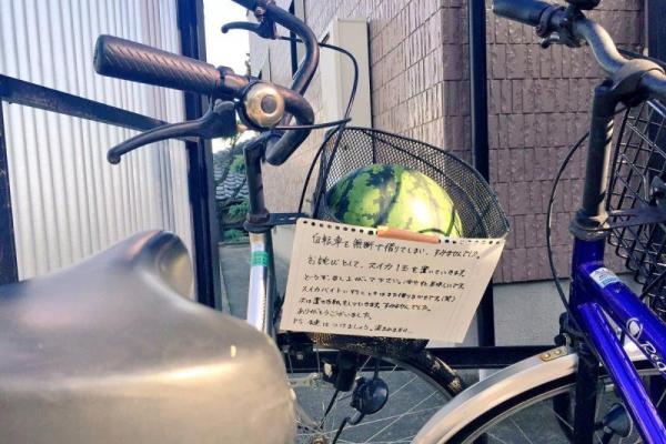Menurut cerita di Twitter, pencuri itu meninggalkan catatan beserta hadiah spesial sembari mengembalikan sepedanya. Bersama dengan catatan itu, sang pencuri juga memberikan hadiah berupa semangka, yang merupakan hadiah yang umum di Jepang, sebagai cara untuk berterima kasih karena telah membiarkan si pencuri "meminjam" sepedanya.
