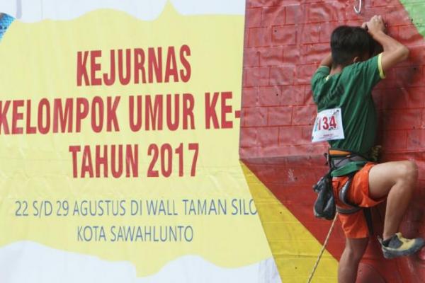 Sawahlunto - Sebanyak 160 atlet mengikuti Kejuaraan Nasional Panjat Tebing Kelompok Umur XII yang digelar Federasi Panjat Tebing Indonesia (FPTI) di Sawahlunto, Sumatra Barat, Rabu (23/8). Mereka Berasal dari berbagai daerah di Indonesia seperti Kalimantan, Bali, Daerah Istimewa Yogyakarta, Jawa Barat, Jawa Tengah dan Jawa Timur.