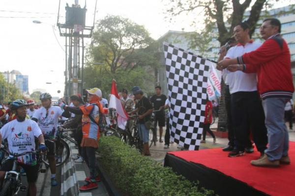 Semarang - Gowes Pesona Nusantara (GPN) 2017 Semarang yang menamakan diri Etape Tugu Muda, sukses digelar. Pejabat daerah hingga masyarakat kota lumpia itu tumplek dalam kebersamaan, Minggu (3/9).