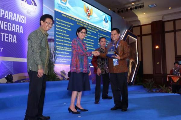 Dalam acara itu, Menteri Keuangan Sri Mulyani memberikan tanda penghargaan WTP kepada Ma`ruf Cahyono.
