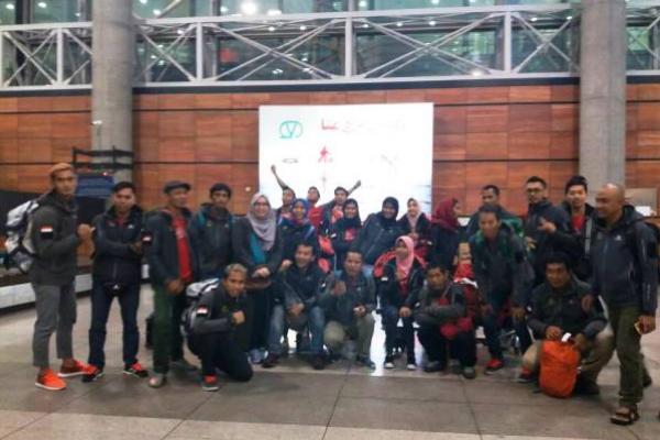 Timnas Panjat Tebing saat tiba di Bandara Internasional Imam Khomaini, Teheran, Iran, Sabtu (16/9).
