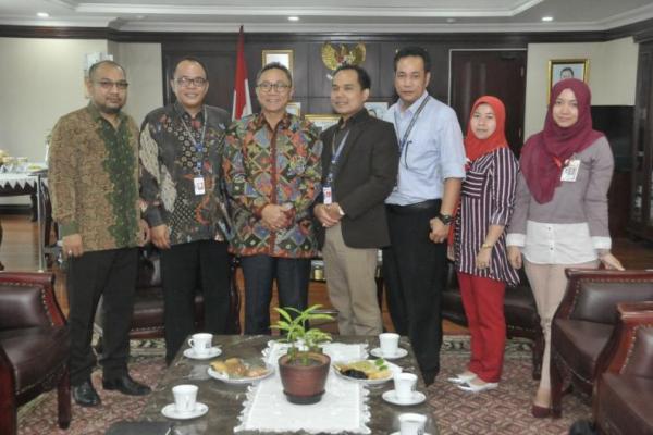 Ketua MPR Zulkifli Hasan saat menerima delegasi Universitas Bhayangkara, di ruang kerja Ketua MPR, gedung Nusantara III, kompleks gedung MPR/DPR/DPD, Senayan, Jakarta, Selasa (28/11)