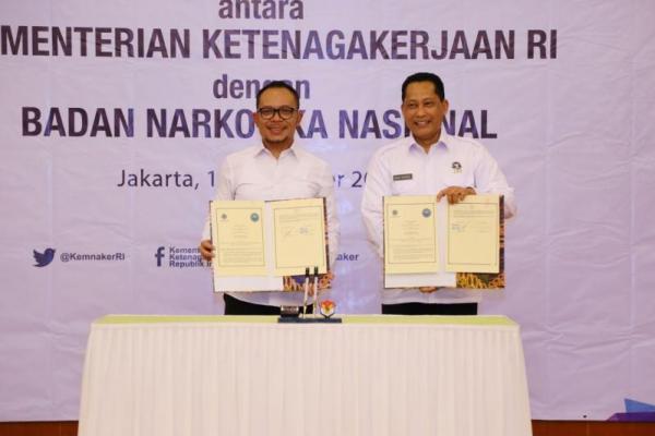 "Penandatanganan nota kesepahaman ini menjadi momentum sangat baik bagi Kemnaker dan BNN untuk pencegahan dan pemberantasan peredaran narkoba di lingkungan Kementerian Ketenagakerjaan," kata Menaker saat memberikan sambutan pada acara penandatangan.