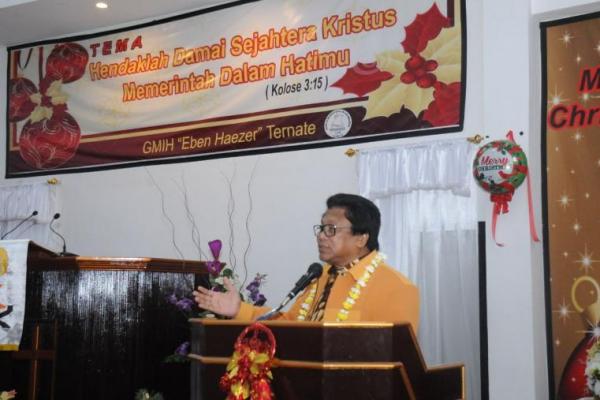 Wakil Ketua MPR, Oesman Sapta hadiri perayaan Natal di Gereja Masehi Injili di Halmahera (GMIH) Jemaat Ebeen Haezer di Jl. Arnold Monotutu Kota Ternate, Rabu (26/12))