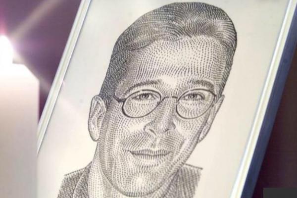 Potret reporter Wall Street Journal Daniel Pearl berdiri dengan lilin sebelum upacara peringatan di London. (Foto: Reuters)
