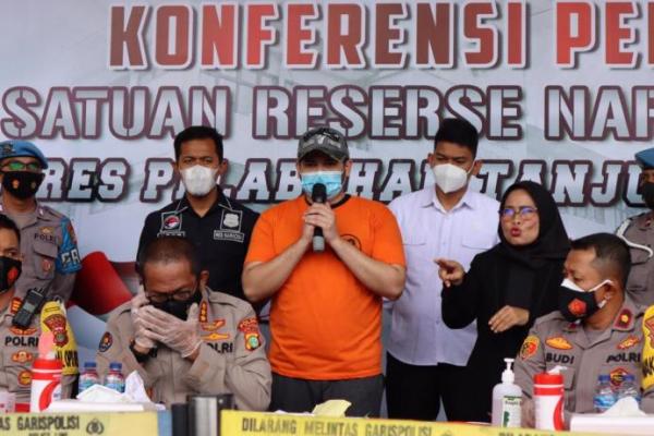Ridho Rhoma berbaju tahanan berikan keterangan. (Foto :PMJ/Ist).