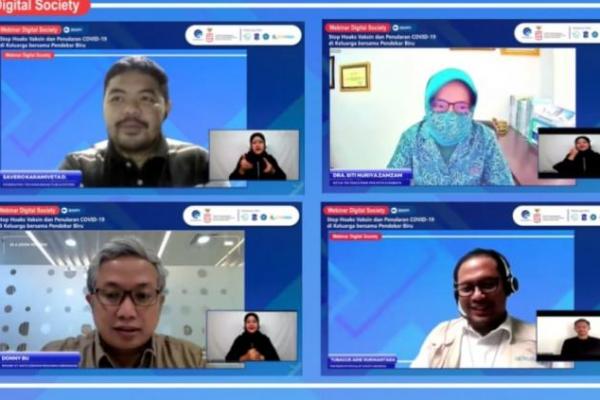 Berdasarkan hal tersebut diatas, Kementerian Kominfo, tim Komunikasi Sosial Politik Masyarakat KPCPEN berkolaborasi dengan, Siberkreasi, serta Tim Penggerak PKK Kota Surabaya, Unicef dan Kitatama kembali menggelar Webinar Digital Society pada hari Rabu (10/2) dengan tema “Stop Hoaks Vaksin dan Penularan Covid-19 di Keluarga bersama Pendekar Biru”, yang memberikan materi tentang strategi komunikasi penanganan Covid-19 dan adaptasi kebiasaan baru melalui program Pendekar Biru serta cara menangkal hoaks vaksin dan Covid-19.