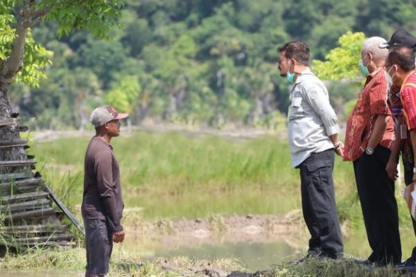 Menteri Pertanian, Syarul Yasin Limpo meninjau lokasi yang akan dijadikan pengembangan program Food Estate Rotiklot di Desa Fatuketi, Kecamatan Kakuluk Mesak, Kabupaten Belu, Kamis (11/02). (Foto: Humas Kementan)