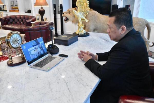 Ketua MPR, Bambang Soesatyo menghadiri secara virtual Sidang Istimewa MA, mendengarkan Laporan Tahunan MA 2020, dari Ruang Kerjanya di Jakarta, Rabu (17/2/21). (Foto: MPR)