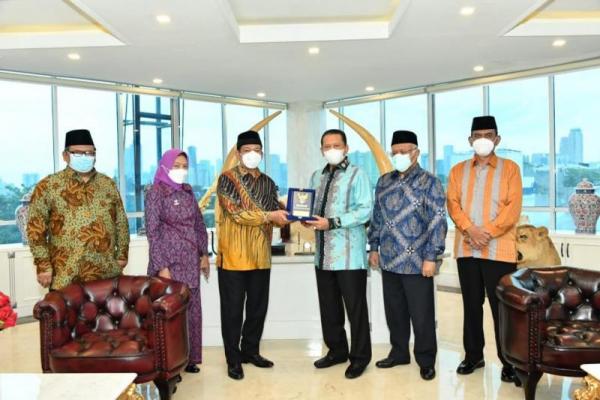 Ketua MPR, Bambang Soesatyo menerima pimpinan Badan Amil Zakat Nasional (Baznas), di Jakarta, Selasa (9/3/21). (Foto: MPR)