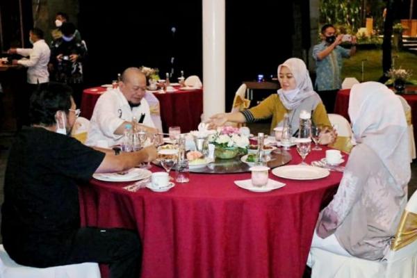 Ketua DPD RI, AA LaNyalla Mahmud Mattalitti saat makan malam bersama Wakil Gubernur Lampung, Hj. Chusnunia Chalim, di Hotel Sheraton, Lampung, Jumat (12/3). (Foto: Humas DPD RI)
