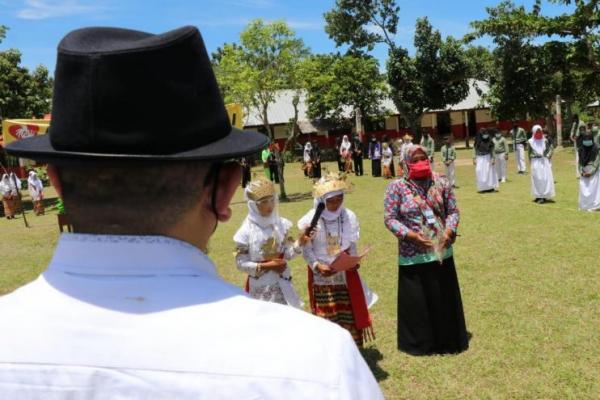 Ketua DPD RI, AA LaNyalla Mahmud Mattalitti saat mengunjungi SDN 2 di Desa Waykaru, di Pesisir Barat, Provinsi Lampung pekan lalu.